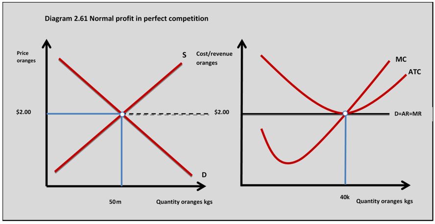 Diagram 2.61 shows firms in the perfect market for oranges where each producer is earning normal profit.