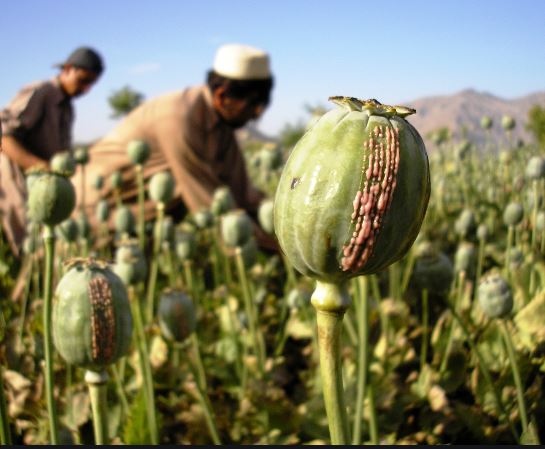 Afghanistan is the world's largest producer of opium, which is the main ingredient in heroin. The crop is illegal in Afghanistan but it controlling production is very difficult. It is a very profitable crop for poorer farmers and it is supported by the Taliban who tax it to fund their military activities.