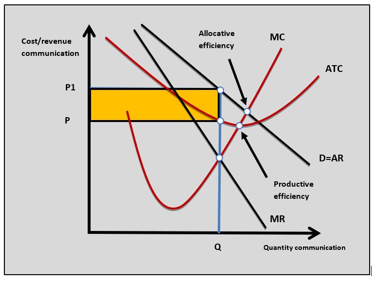 - A diagram to show how a monopoly fails to achieve productive and allocative efficiency. The diagram opposite shows how productive and allocative efficiency is not achieved in the drugs market.