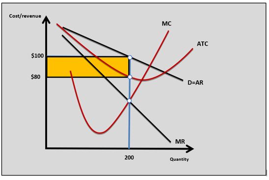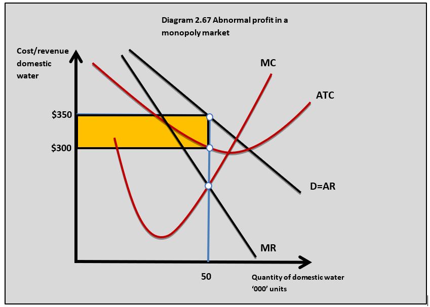 When the monopolist is making abnormal profit the entrepreneur(s) who own the business are earning more profit than the minimum they need to keep producing in the market. This is shown in diagram 2.67.
