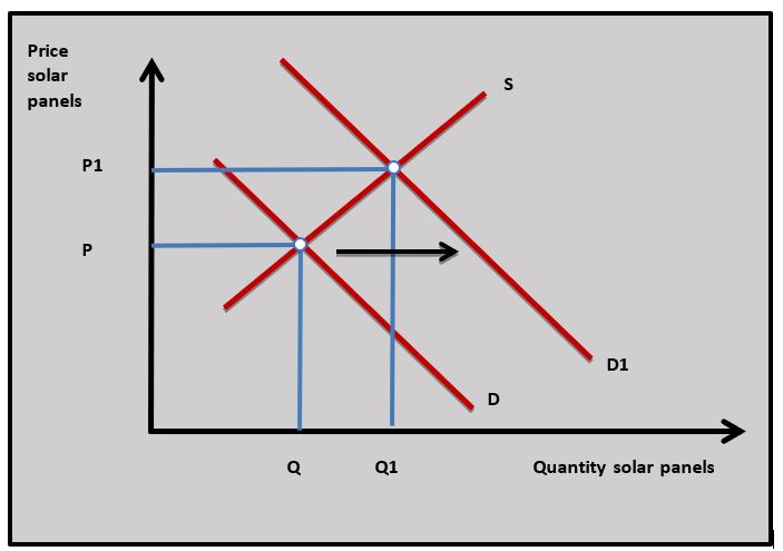 • The price elasticity of demand and supply of solar panels will determine the size of the changes in consumer and producer surplus, as well as the government tariff revenue and respective welfare losses.