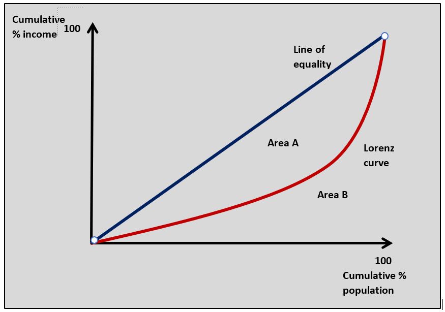 • A Lorenz curve diagram to show income inequality in a country such as the US.