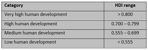 The three criteria are combined to give a numerical value between 0-1, the closer the value is to 1 the more advanced economic development is in the country.