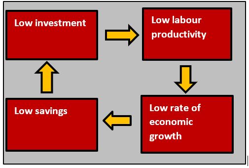 - A diagram to show how aid might provide a useful way to break the poverty cycle.