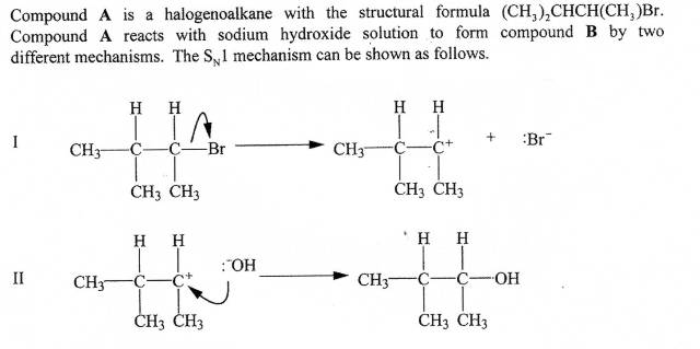 The above three errors are all due to students misunderstanding what a ‘curly arrow’ represents. There is a further problem which is best represented by an actual IB question and two different answers given by two students. The question was: