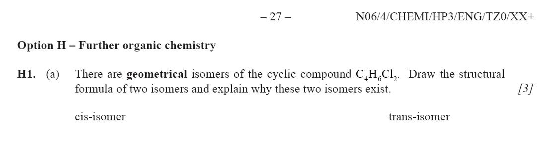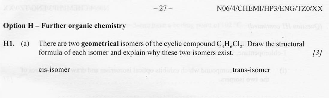 A similar instance occurred in November 2006 HL Paper 3 in Option H - Further organic chemistry. The original question in the examination taken by the students had the question: