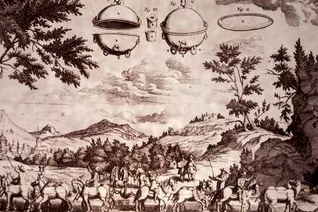 Horses trying to pull apart two evacuated bronze spheres in Magdeburg, Germany in 1657. The experiment was performed by Otto von Guericke