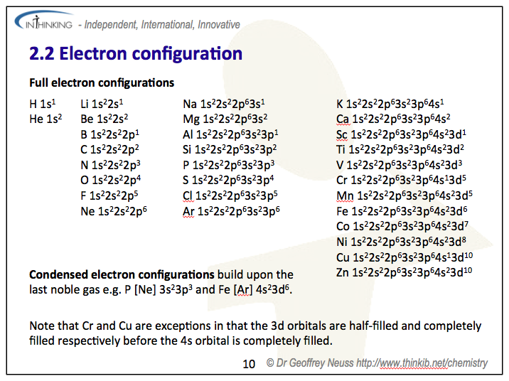 The electron configurations of Cr and Cu as exceptions should be covered. International-mindednessCERN (The European Organization for Nuclear Research) is run by 20 European member states and involves scientists from many other countries. It operates the world’s largest particle accelerator and its detectors are used to study the fundamental constituents of matter. |