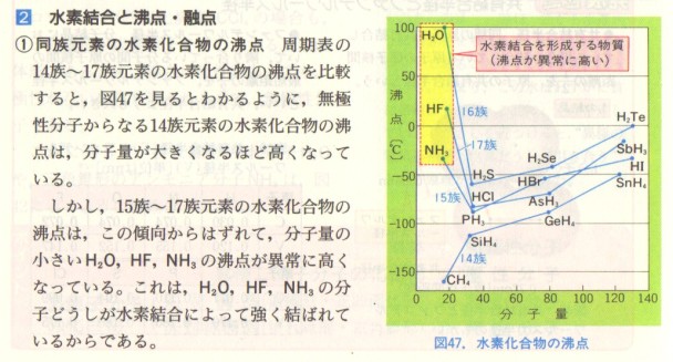 Even without knowing any Japanese it is obvious that the section is explaining that the anomalous boiling points of water, ammonia and hydrogen fluoride compared to the rest of the hydrides in their respective groups are due to hydrogen bonding. Chemists need to be able to communicate with each other internationally and much, but not all[1], of the language of chemistry (and the mathematics it uses) is universal. Because of its importance there is a separate page on this website on the Language of Chemistry in the Theory of Knowledge section.