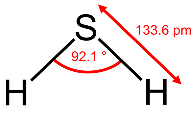 An astute student might argue that the bond angle also depends upon the period where the central atom is located since nitrogen and oxygen are in period 2 and phosphorus is in period 3. There is some truth in this. What would you expect the bond angle in hydrogen sulfide to be? On the simple theory it might be expected to be similar to water i.e. about 104.5o. If we now use what we know about phosphine then we might expect it to be a little less than 93.5o. Guess what - it is 92.1o - our new theory works! We could extend this and try to predict the bond angle for sulfur dichloride. Using our new logic we might expect it to be perhaps one or two degrees less than the 100o in phosphorus trichloride as there are now two non-bonding pairs of electrons? Wrong! It is 103o.