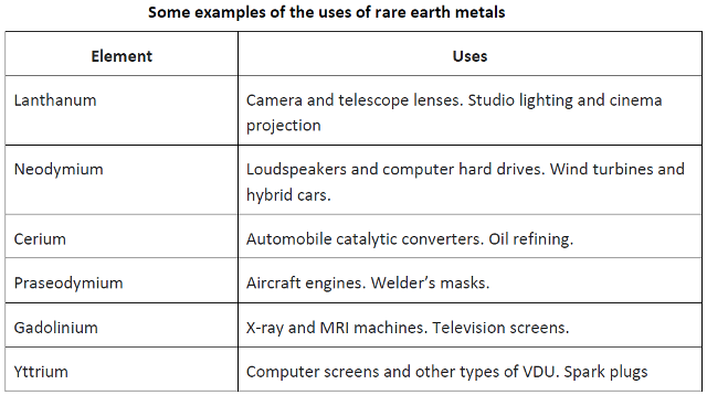 The international-mindedness part of the syllabus refers to national wealth being related to the availability of metal resources, and the means to extract them. In sub-topic 3.1 The periodic table the syllabus also refers to the lanthanoids and actinoids. In recent years there has been much investment in extracting and purifying the so called rare earth metals. These are essentially fifteen lanthanoids together with scandium and yttrium. In fact they are not particularly rare, for example cerium has a similar abundance in the Earth’s crust to copper. However they do have many uses in modern technology.