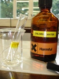 Chlorine, bromine and iodine are hazardous chemicals so students should not be allowed to use them in their pure state. If you are able to obtain bromine and iodine then it is helpful to demonstrate them to the students using a fume cupboard. Chlorine can be prepared freshly by reacting concentrated hydrochloric acid with crystals of potassium manganate(VII). They should be able to see the green gas being formed. Wear protective gloves when handling liquid bromine. With care you can ‘pour’ the gas from the bottle so that students can see how volatile and dense the vapour is. A few crystals of iodine can be heated carefully in a tube. Sometimes books say that it sublimes and certainly purple crystals will be seen subliming on the sides of the tube but it can also be seen to melt. If you cannot make or obtain the pure halogens then these properties can be shown using the following video clip.