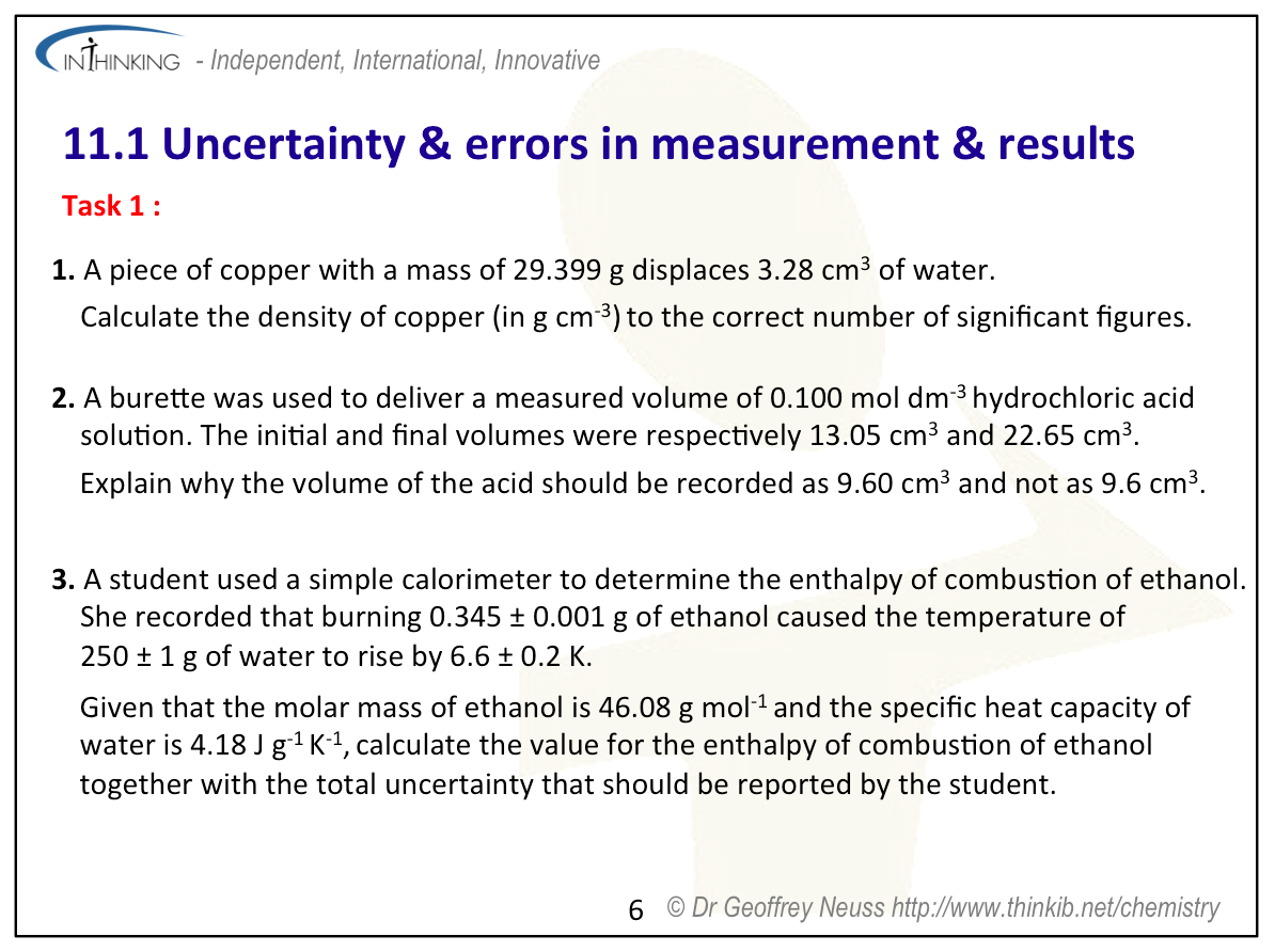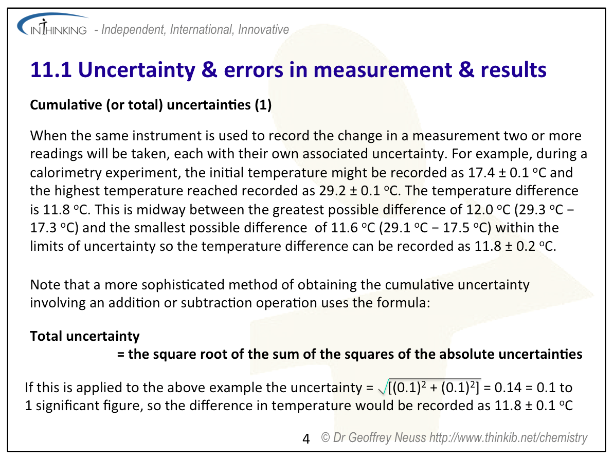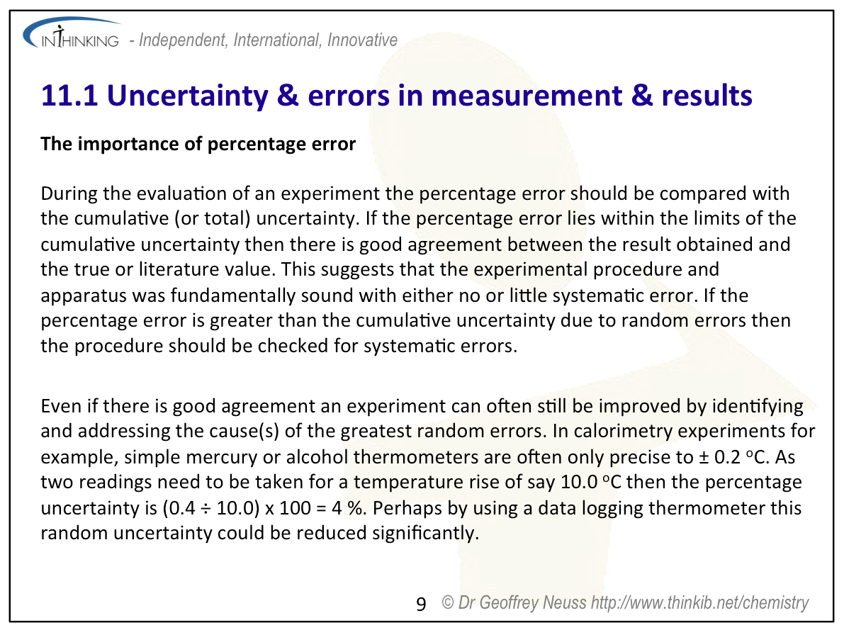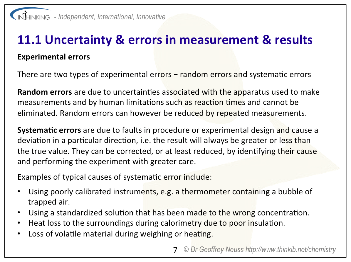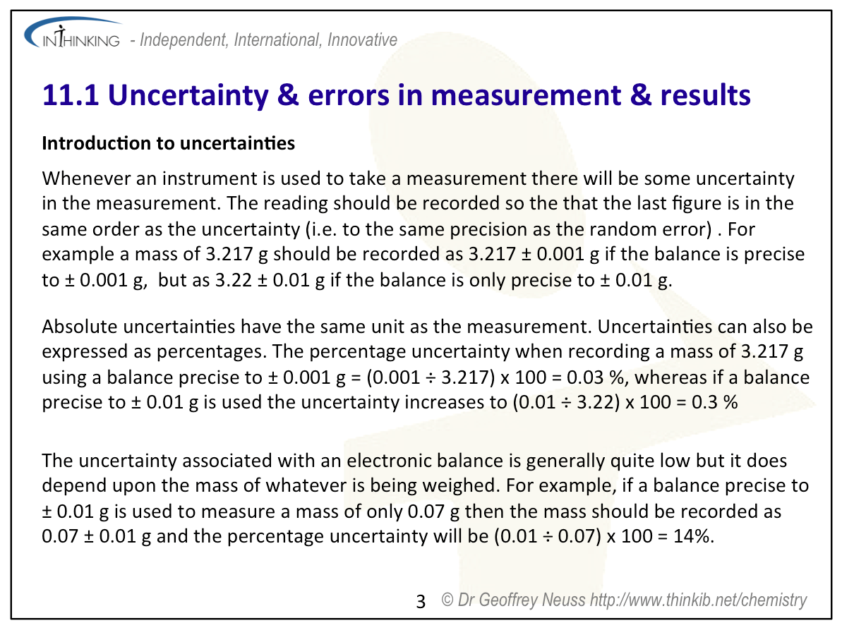 11.1 Uncertainty & errors in measurement & results (2 hours)