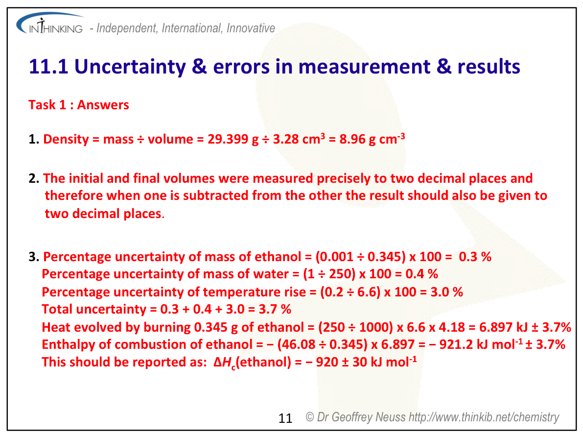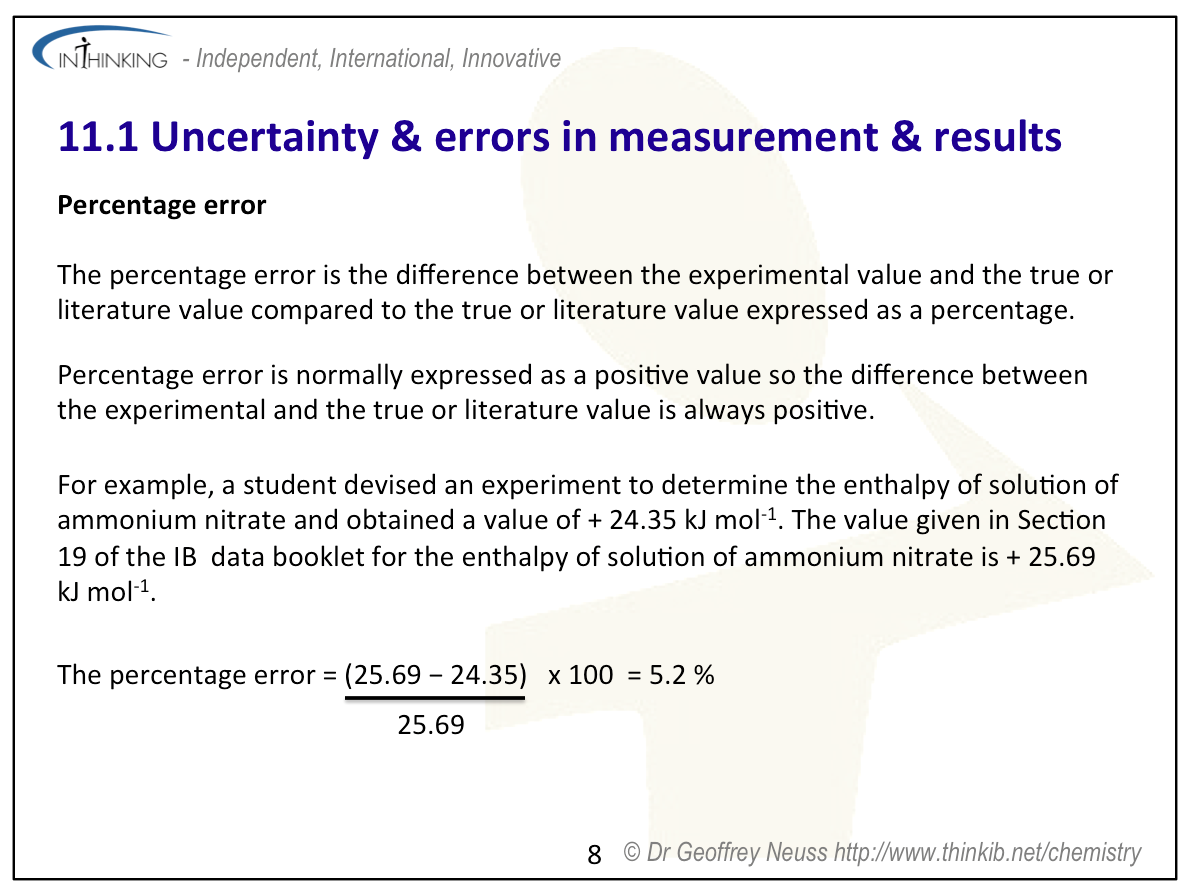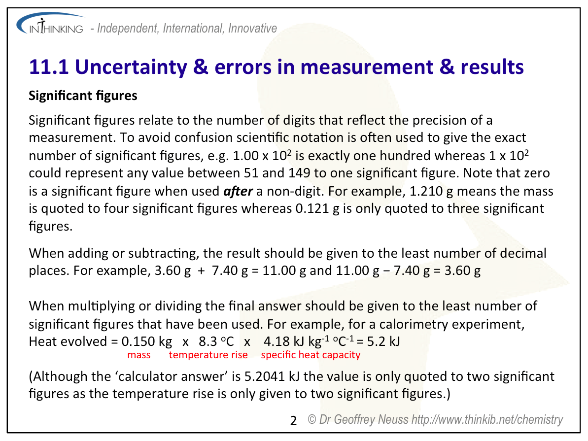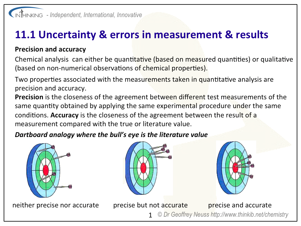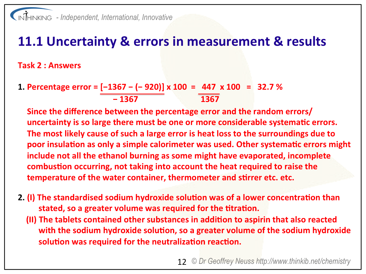 11.1 Uncertainty & errors in measurement & results (2 hours)