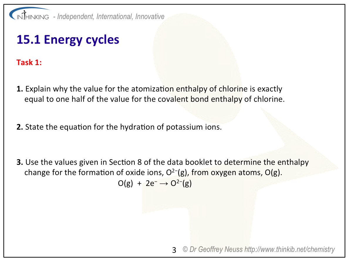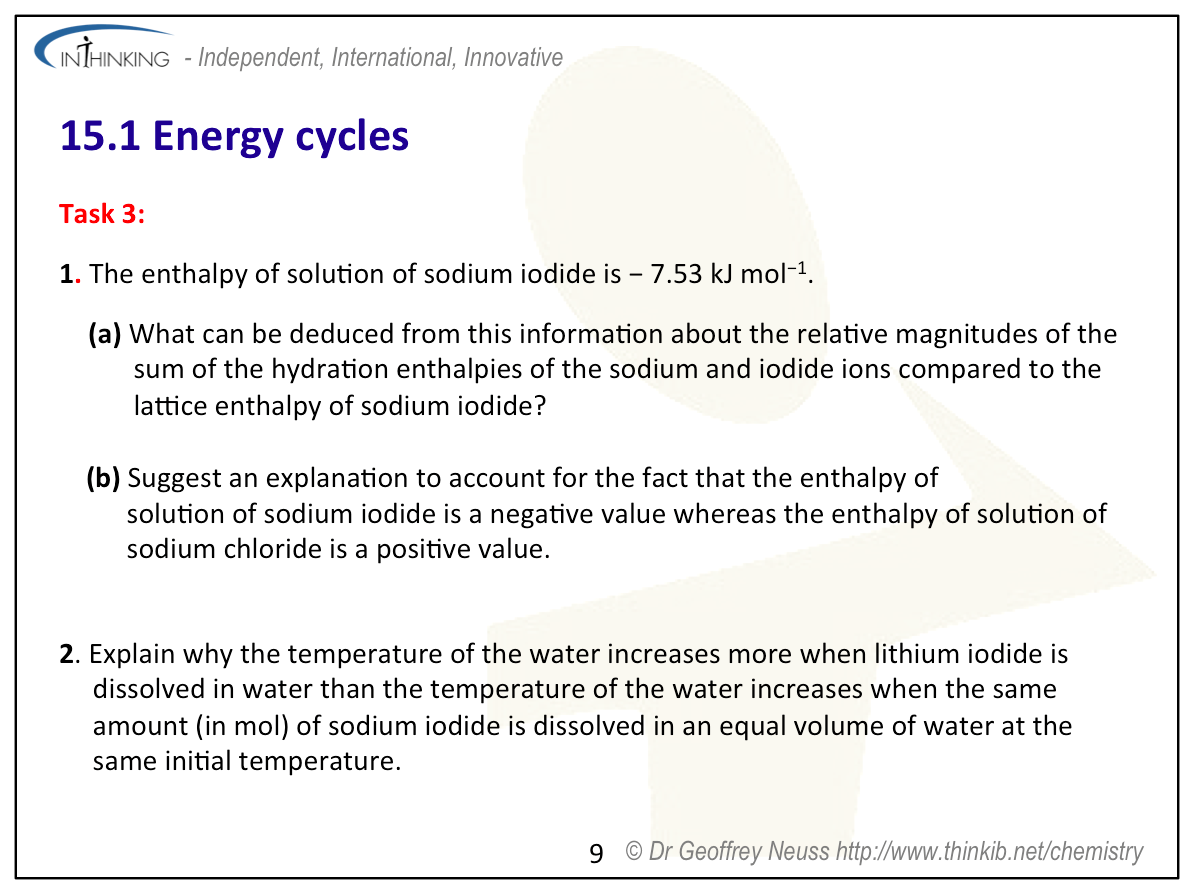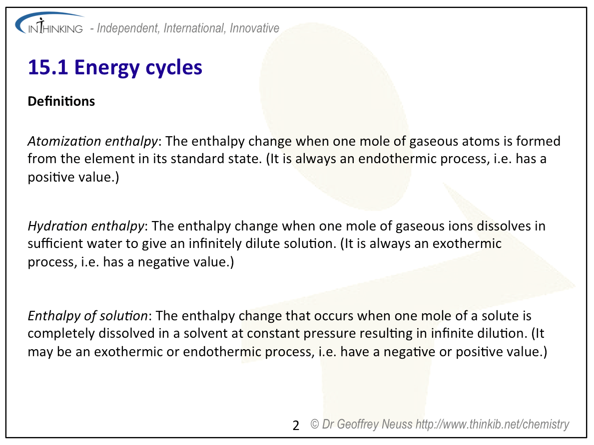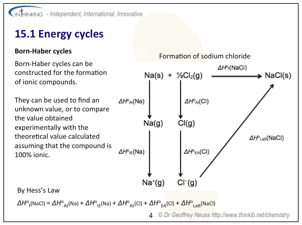 | Clarification notesThe polarizing effect of some ions which produces covalent character in some essentially ionic substances will not be assessed. International-mindednessThe significance of being able to obtain indirect measurements using energy cycles for things that cannot be measured directly is of global importance. For example, snow depth cover, borehole temperatures, |