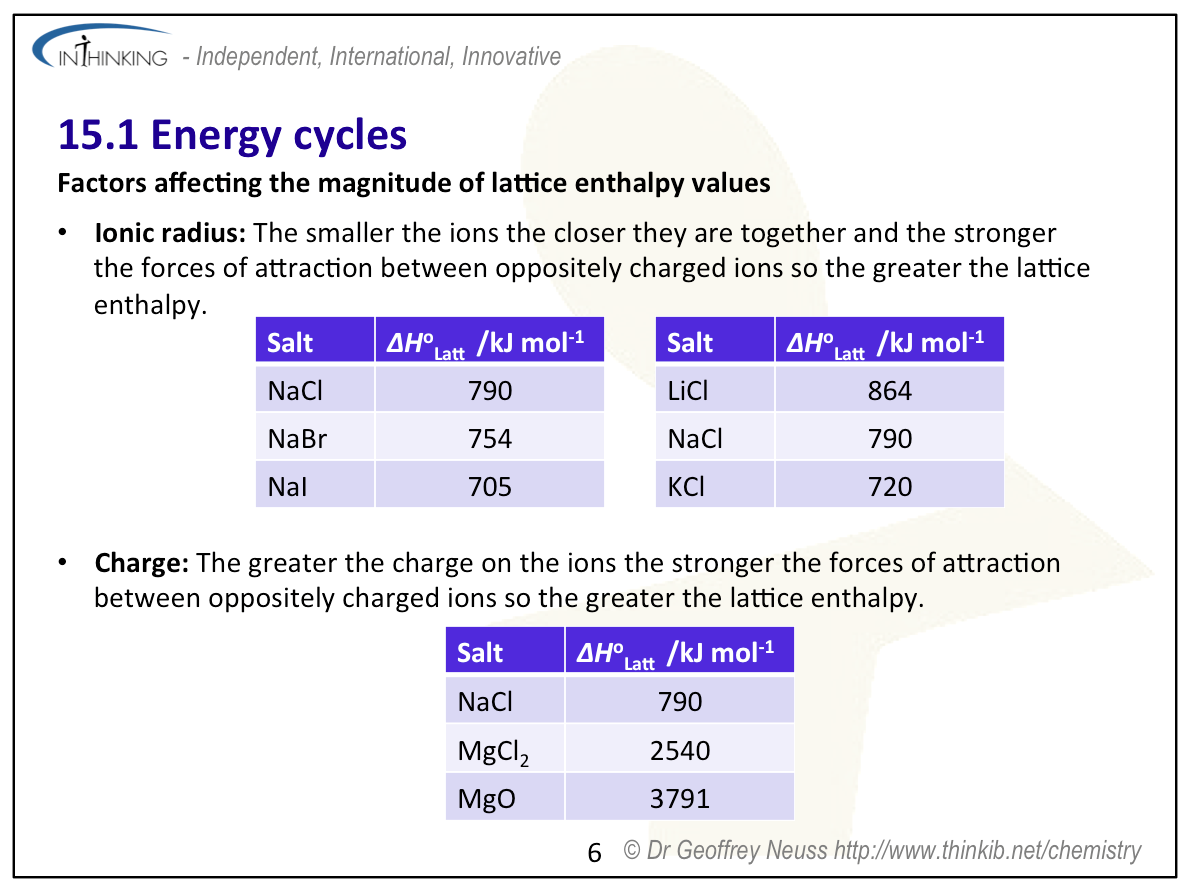 2. Lattice enthalpy and electron affinity specifically for the IB by Richard Thornley.