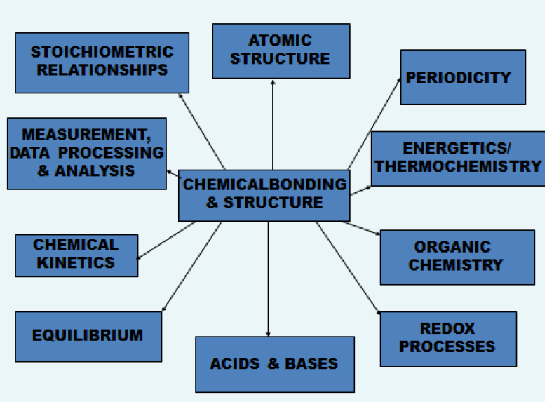 One example at Standard level and one example at Higher Level relating Topics 4 & 14 Chemical bonding & structure to each of the other core and AHL topics is given below. (There are of course many other examples that could have been used to illustrate the relationships between the topics.)