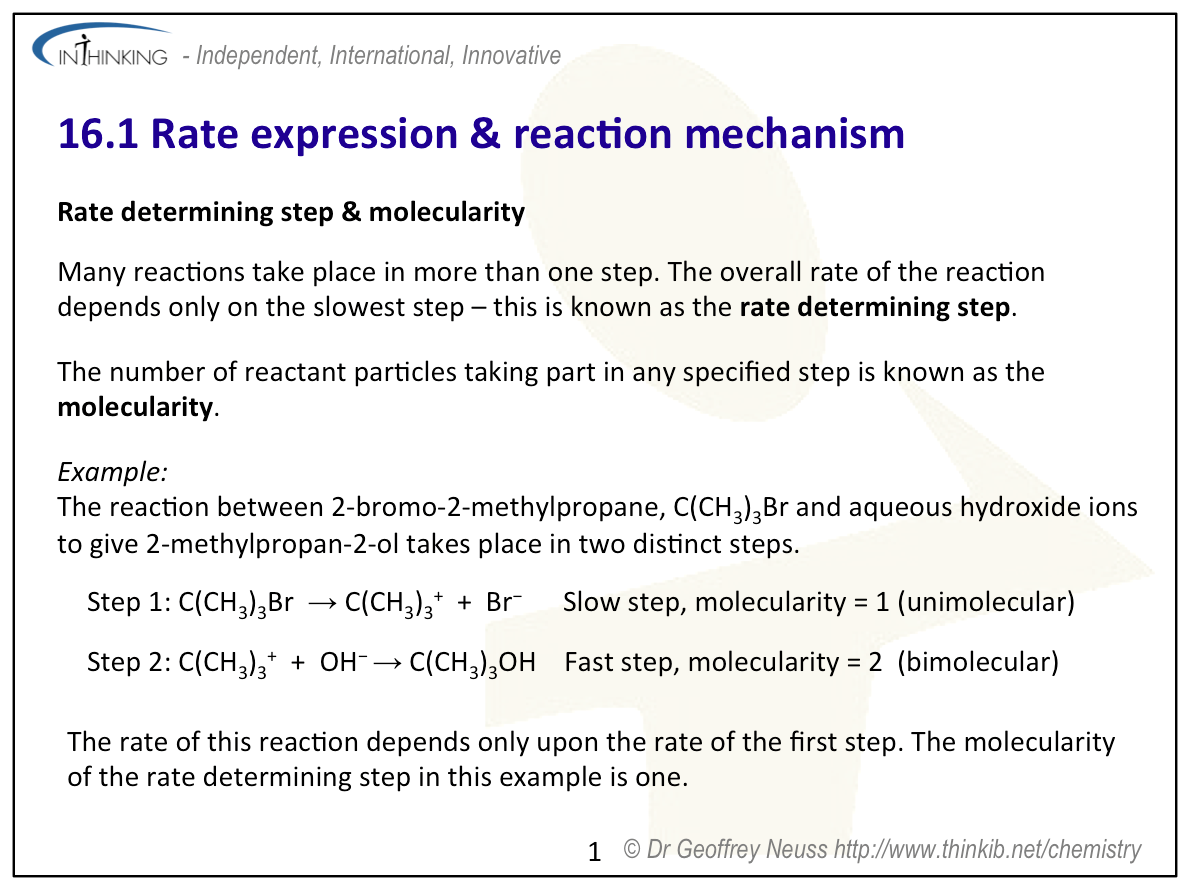 Rather like 6.1 : Collision theory and rates of reaction, this sub-topic also provides a good example of the Principle of Occam’s razor. As theories develop they need to remain as simple as possible while maximizing their powers of explanation. Because the probability of collisions between three reacting species is low it means that stepwise reaction mechanisms are more likely.