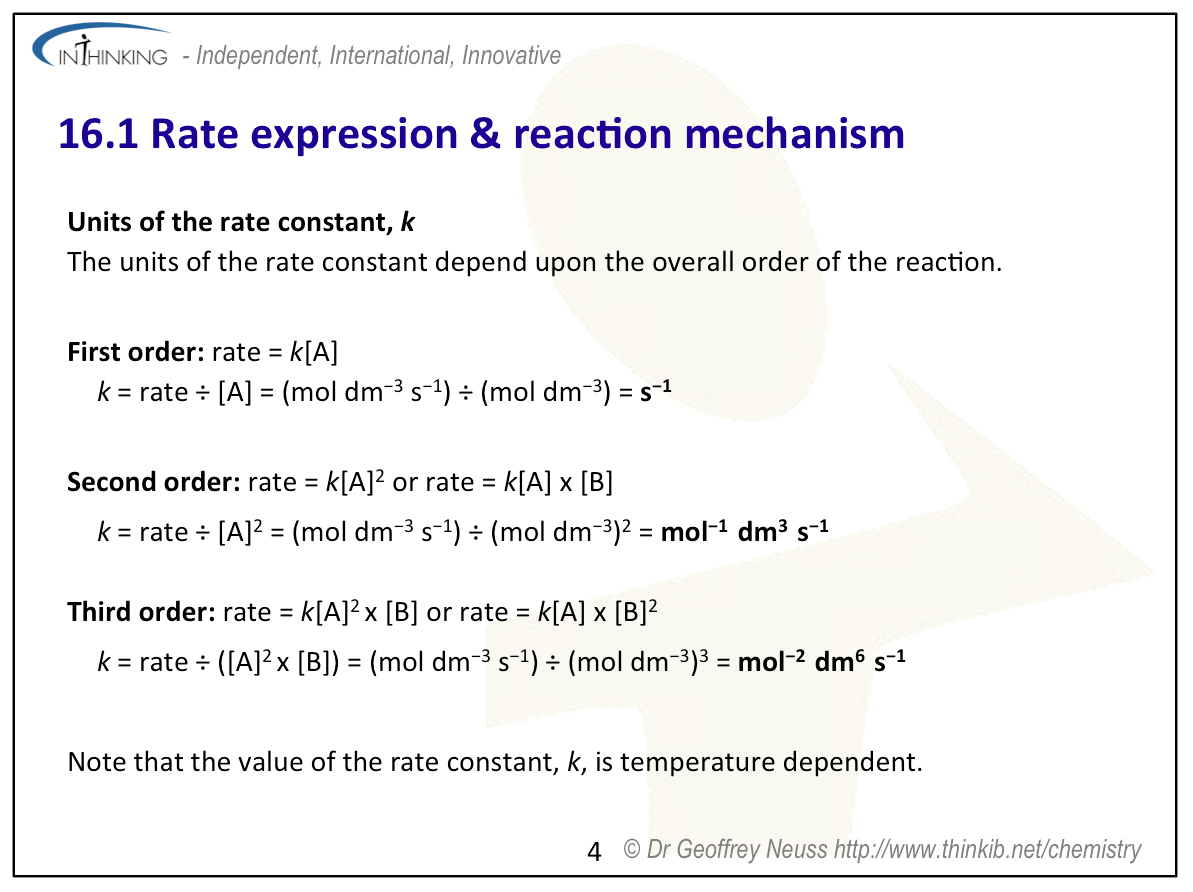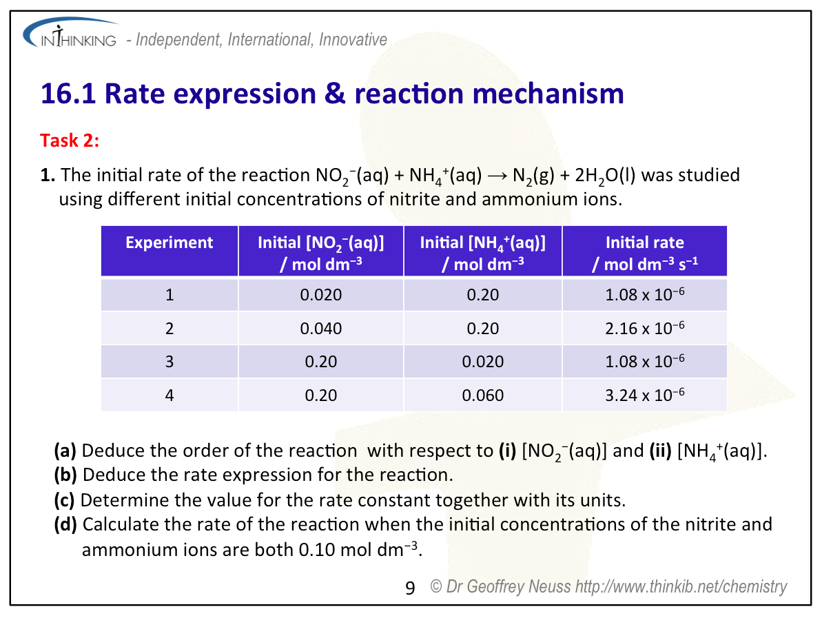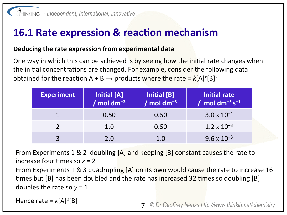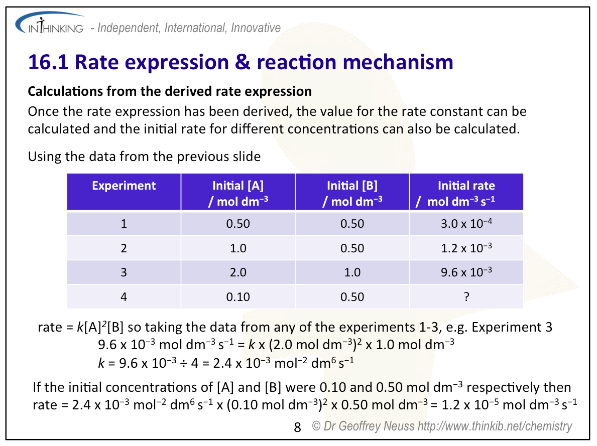 1. Deducing the rate expression by looking at initial rates by Richard Thornley, an IB teacher at the International school of Genoa. The video also looks at the units of the rate constant, k, although this is explained more in the next video.