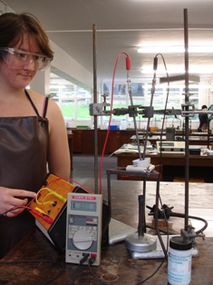 Electrolysis lends itself to some good practical work. Unfortunately there is little on the syllabus for Standard Level students to do practically. Sub-topic 9.2 Electrochemical cells requires students to be able to state what happens at each electrode and to describe how current is conducted but the examples are limited to the electrolysis of a molten salt. The Additional Higher Level Material takes this further in 19.1 Electrochemical cells (AHL) where electrolysis in aqueous solution is included as is the use of electrolysis for electroplating. Even for the AHL quantitative problems involving Faraday’s Laws do not appear to be required as only relative amounts of products formed during electrolysis. need to be determined. However Faraday's constant is still needed to solve problems using ΔG⦵ = − nFE⦵.