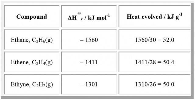 It is greater but only by about 10% per mole. In fact when 1.0 g of ethene burns in a plentiful supply of oxygen the heat given out is only slightly less than when 1.0 g of ethane completely combusts.