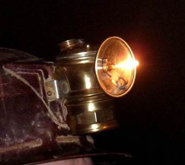 Approximately the same amount of heat is also given out with 1.0 g of ethyne, C2H2(g), which requires less oxygen (2.5 mol per mol of ethyne). Ethyne burning in air used to be used to provide light in miners’ and cavers’ lamps (see left) and on early automobiles as the flame is so yellow. However when burned in oxygen the heat evolved from the very hot blue flame is used to weld metal, as in oxy acetylene welding (see right).