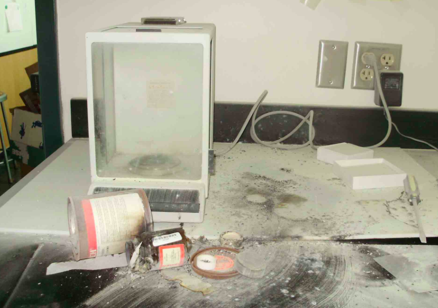 In 2011 it was reported that scraping an old sample of lithium aluminium hydride with a spatula caused a flash fire in a university laboratory (see above) – probably because it reacted with moisture in the air to form hydrogen gas. This potential hazard that friction can cause a fire is listed under the properties of lithium aluminium hydride on PubChem.