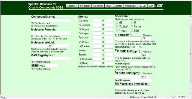 One topic where databases are really useful is Topic 11.3 (and 21.1) - Spectroscopic identification of organic compounds where students are unlikely to have good access to actual spectrometers. You could give them a series of compounds and ask them to predict the main absorptions/peaks etc. in their IR, 1H NMR and Mass Spectrum then get the students to retrieve the actual spectra from a database and compare the two. There is probably scope for some good 'hands off' Individual Scientific Investigations here. There are many databases of spectra. Perhaps the best free one is organised by the National Institute of Advanced Industrial Science and Technology (NIST). This includes the 1H NMR, IR and Mass Spectra of thousands of compounds and also includes spectra from spectroscopic techniques not on the IB syllabus such as ESR, 13C NMR and Raman.