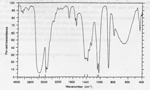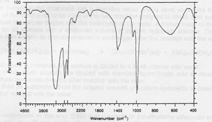 Compound MS-2. Elemental analysis: 37.50% C, 12.50% H, 50.00 O Mass spectrum: molecular ion at 32 and fragments at 31, 17 and 15. IR spectrum given below. 1H NMR: signals at 3.8 (integration trace 3 units) and 4.5 ppm (integration trace 1 unit).