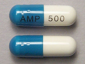 8. The structure of ampicillin ( a general purpose antibiotic) and two ampicillin 500 mg capsules.