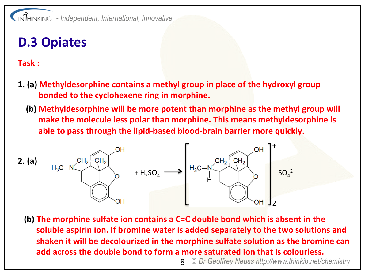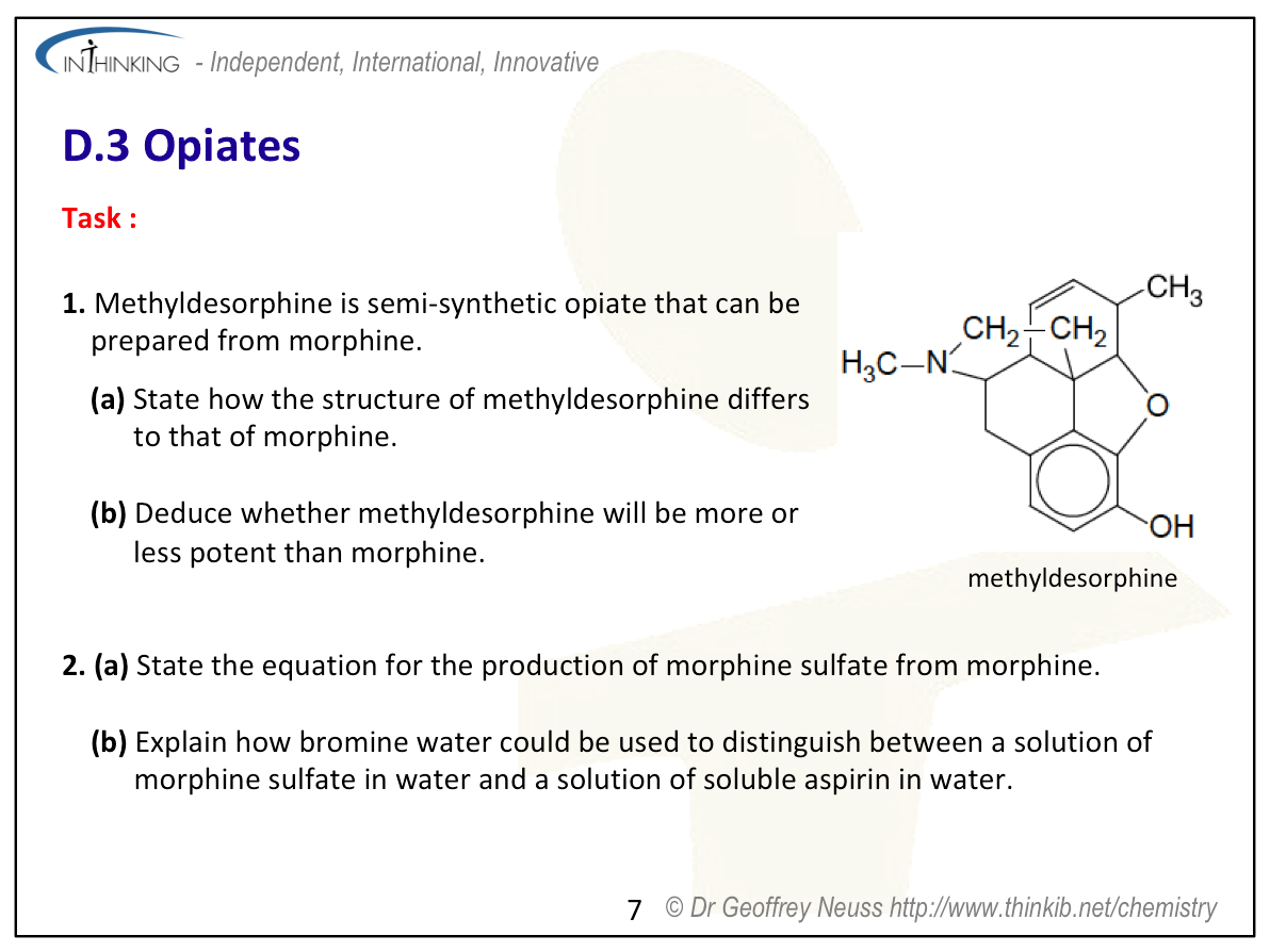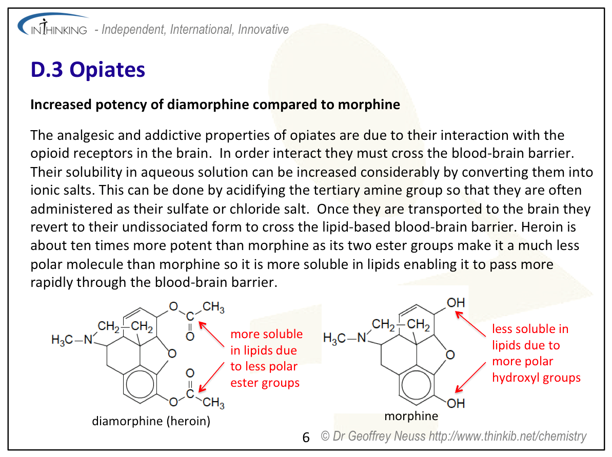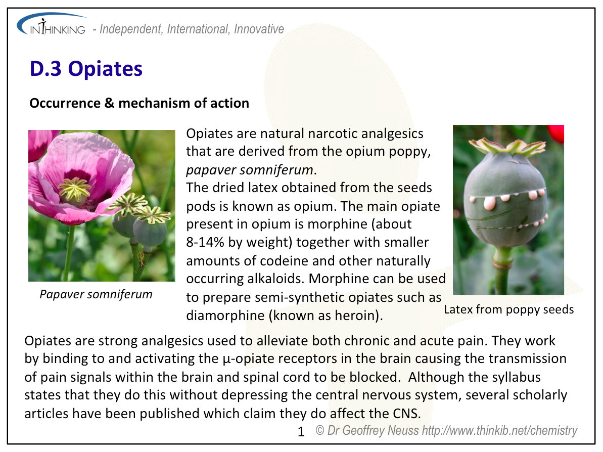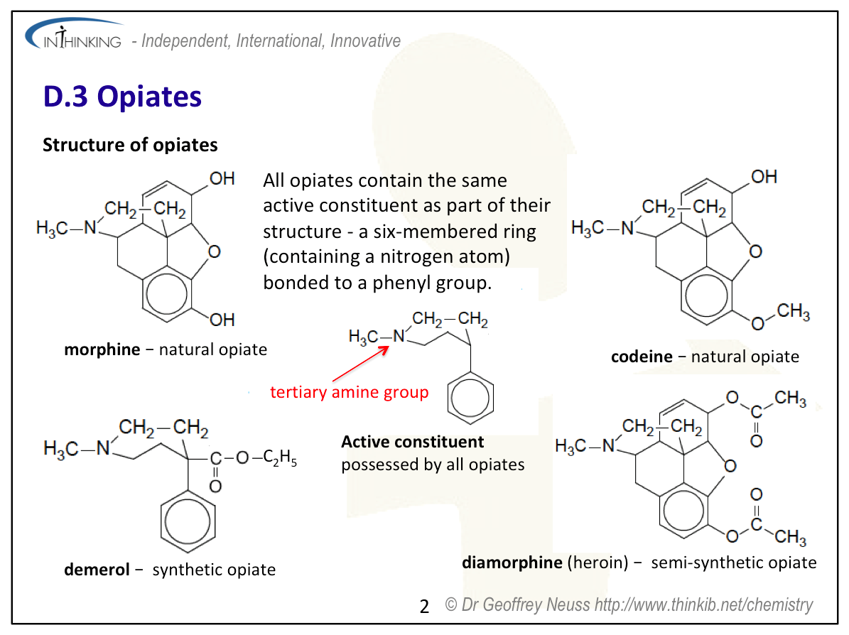 | Clarification notesThe structures of morphine, codeine and diamorphine (heroin) can be found in Section 37 of the data booklet. International-mindednessMany illegal drugs, including opiates, are grown and/or produced in a relatively small number of countries and then trafficked and sold worldwide. |