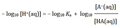 Substituting the definitions for pH and pKa gives the normal expression for the Henderson-Hasselbalch equation