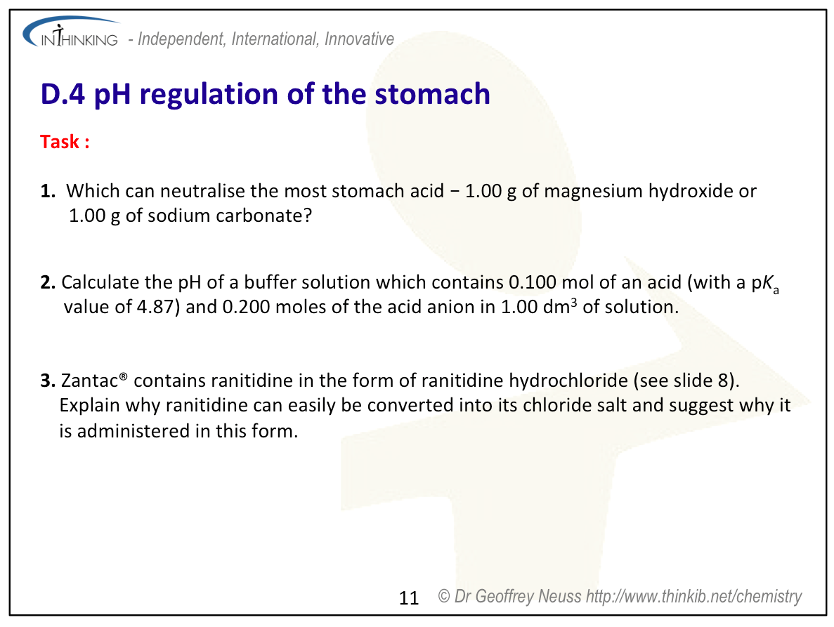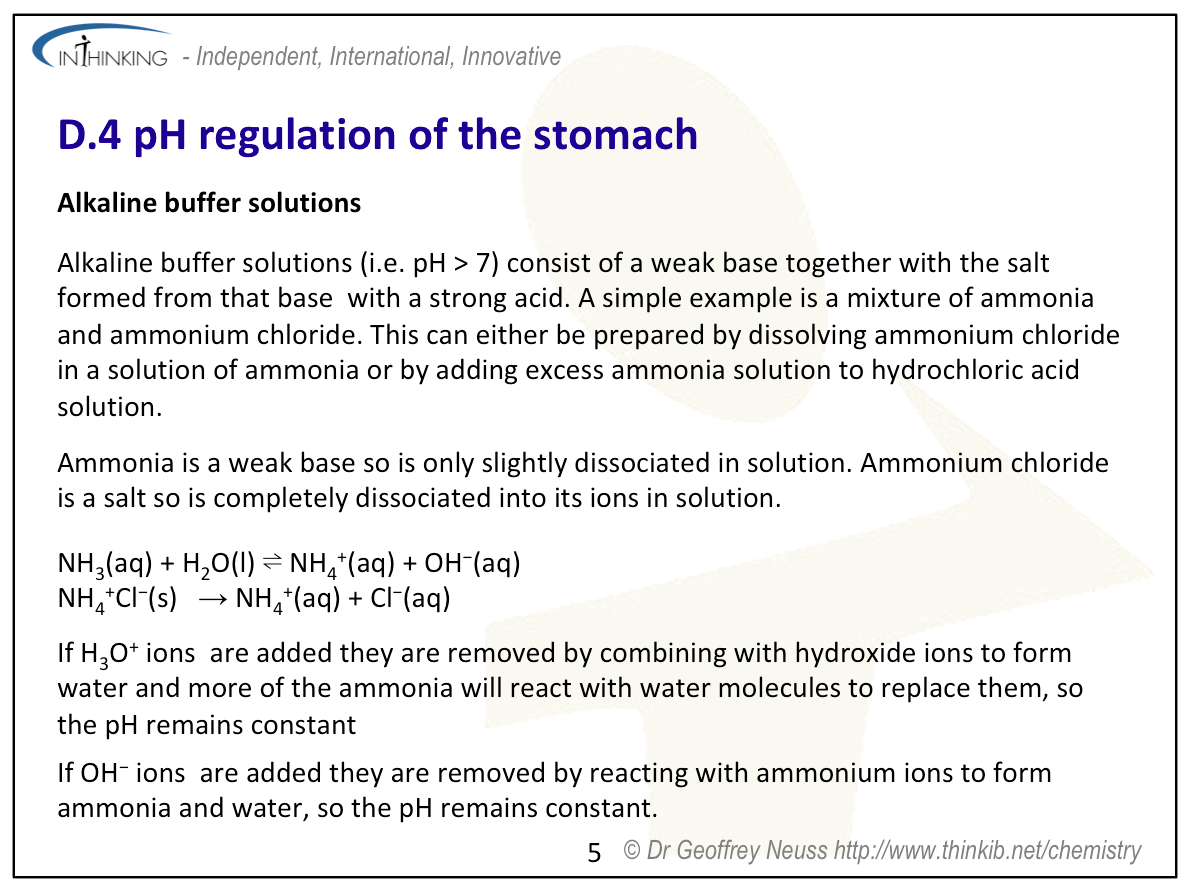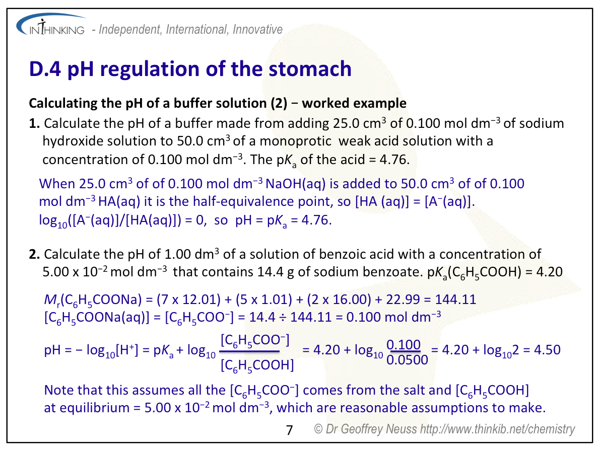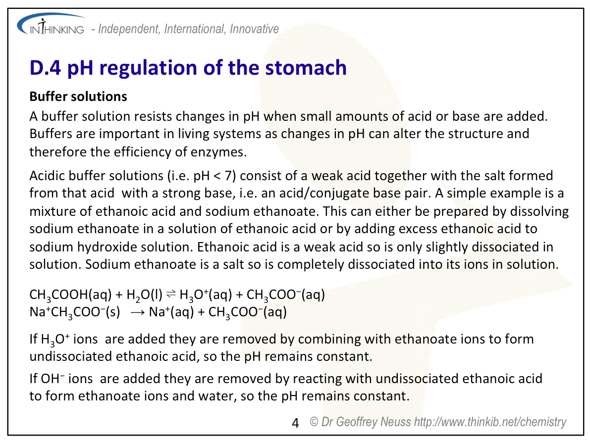 Finally you will need to teach about buffer solutions and give examples of buffer calculations. For Standard Level students this will require a considerable amount of new background theory - see 'Pause for thought'