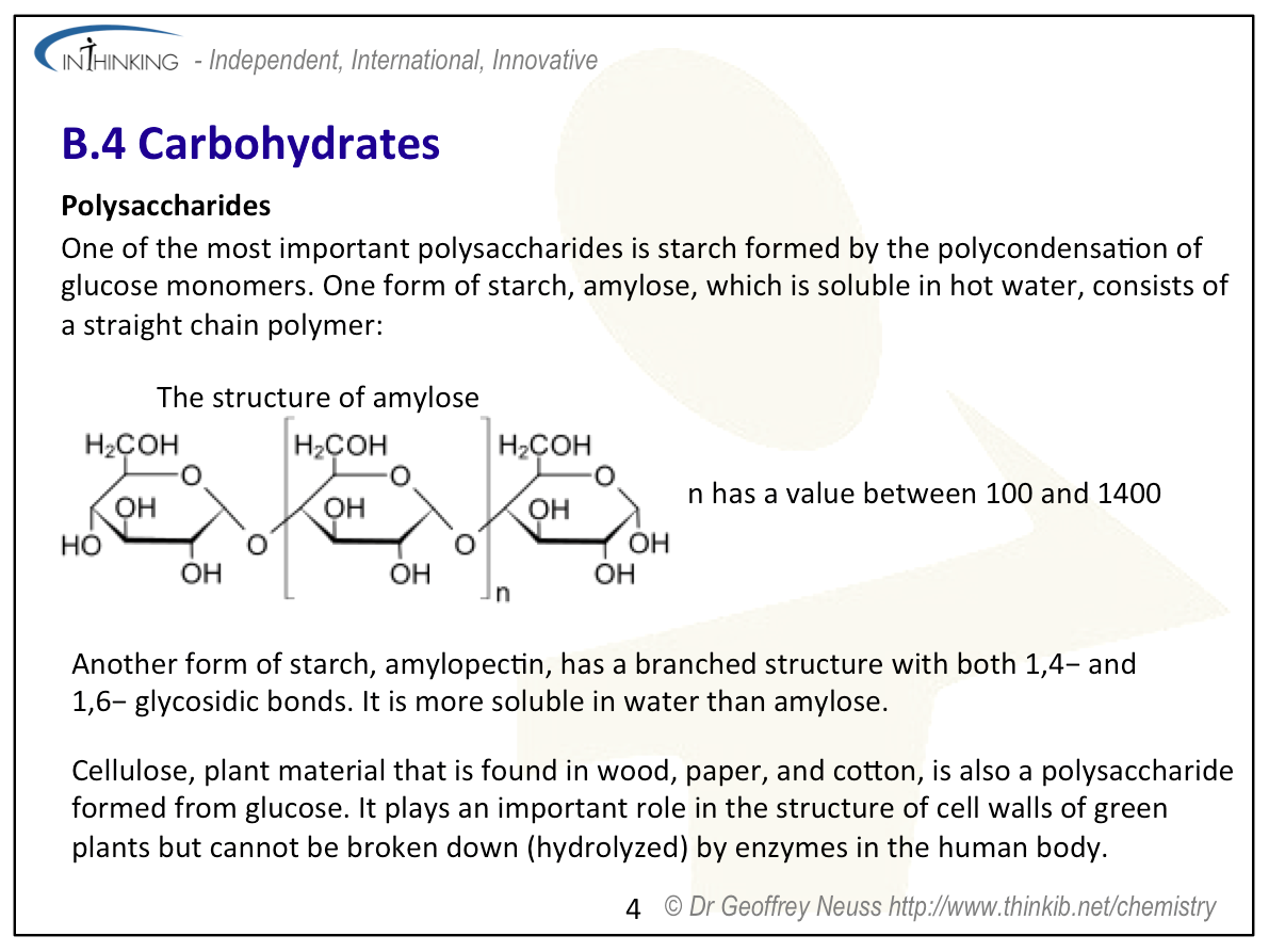 3. A link to a website from Elmhurst College that helps to distinguish clearly between the amylose and amylopectin forms of starch. It also contains links to other web pages on carbohydrates.