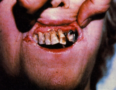 Vitamin C is one of the vitamins listed in B.5 Vitamins. You will need to discuss its structure and explain why it is water-soluble as well as discuss the causes and effects of a lack of vitamin C in the diet. The picture taken from Man-of-War by Stephen Biesty (Dorling-Kindersley, NY, 1993) graphically shows the effects of scurvy on the gums and teeth! The recommended daily allowance is about 60-70 mg and this can be obtained easily by eating fresh fruit and vegetables. However many people do also take supplementary vitamin pills (perhaps because they erroneously think that it will help to ward off the common cold - see the page which includes the section on Linus Pauling and the ad hominen fallacy).