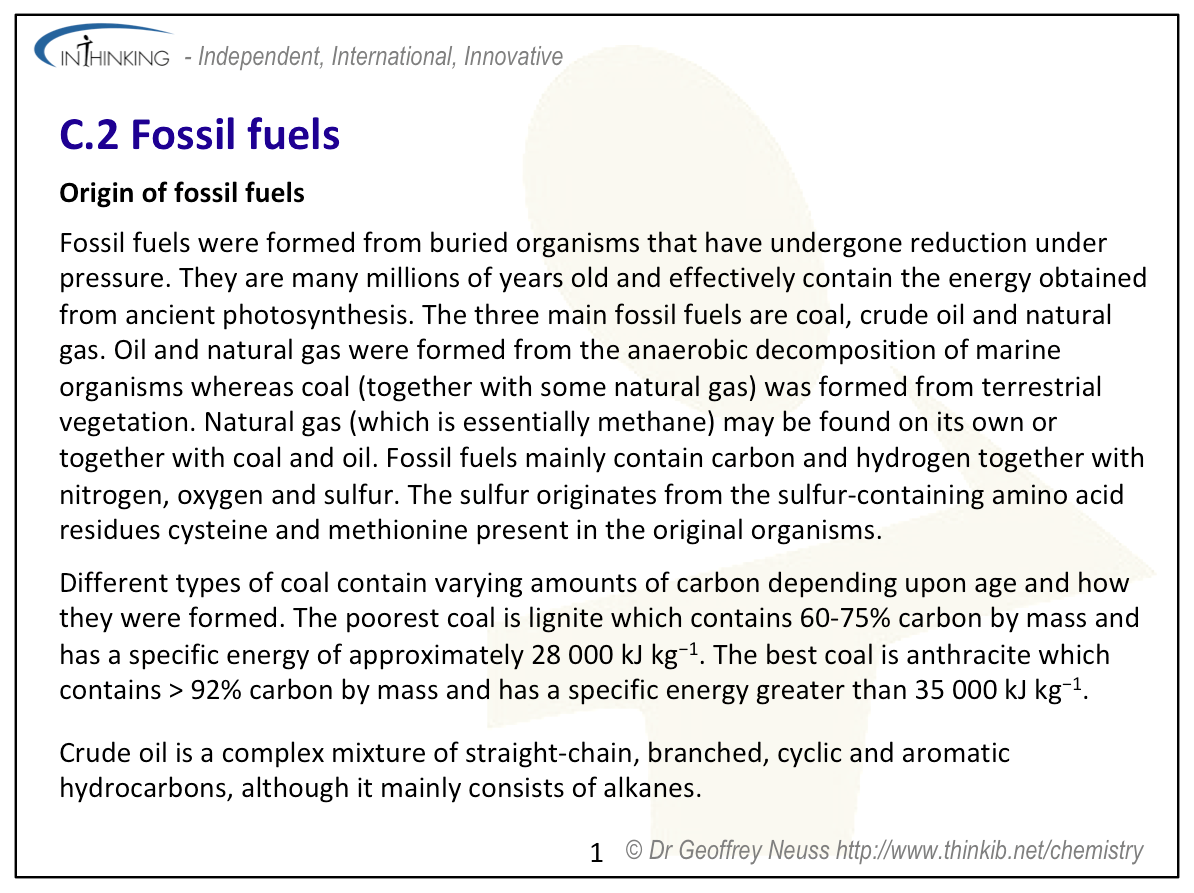 C.2 Fossil fuels (3 hours)