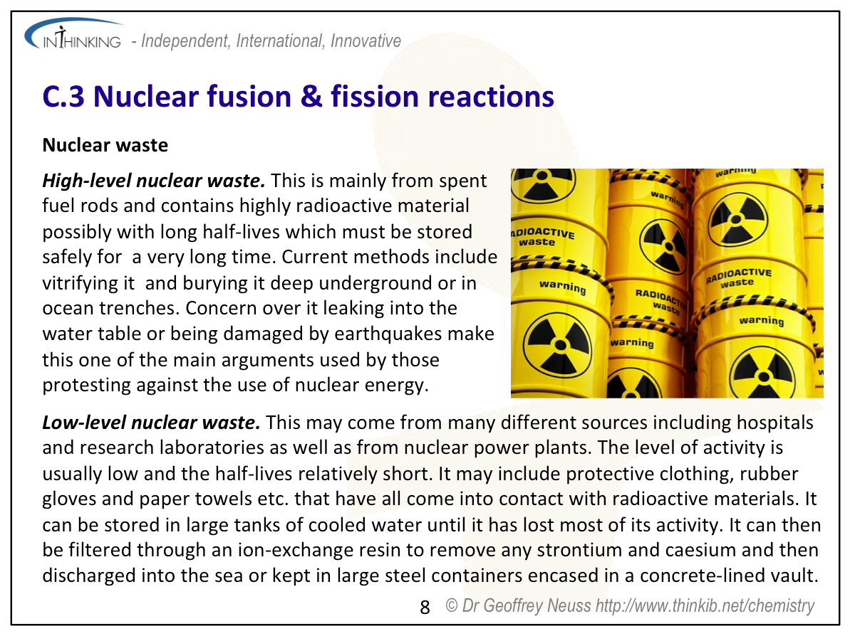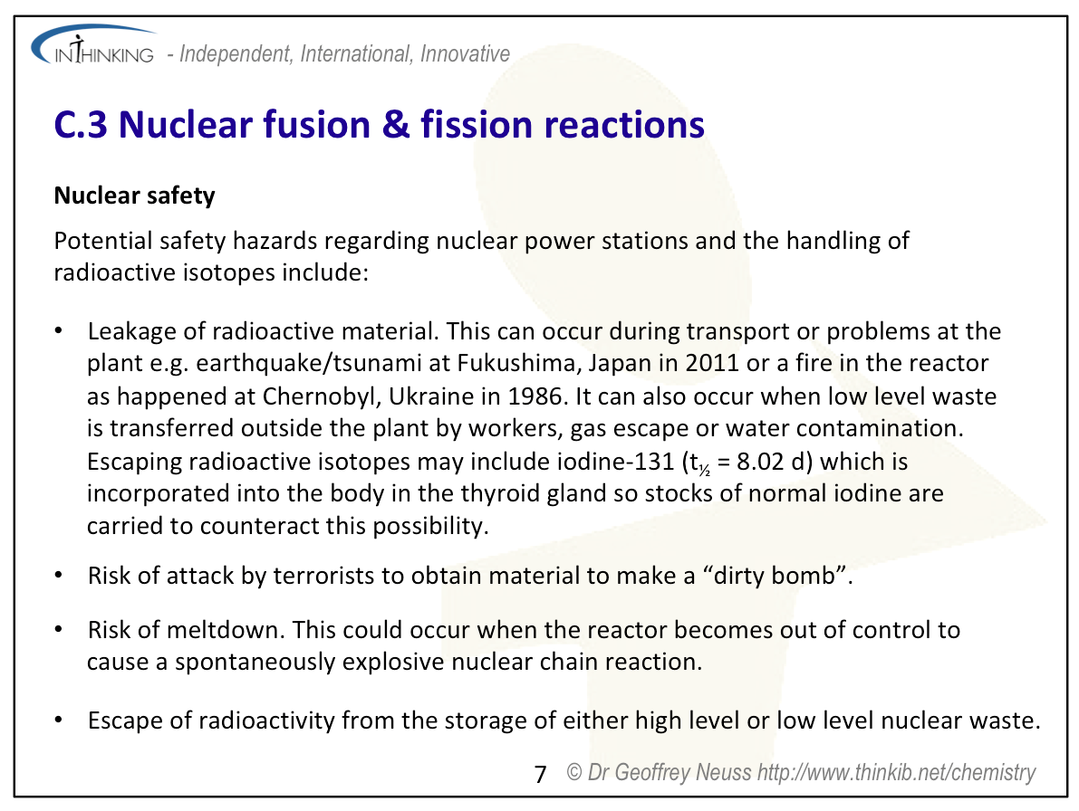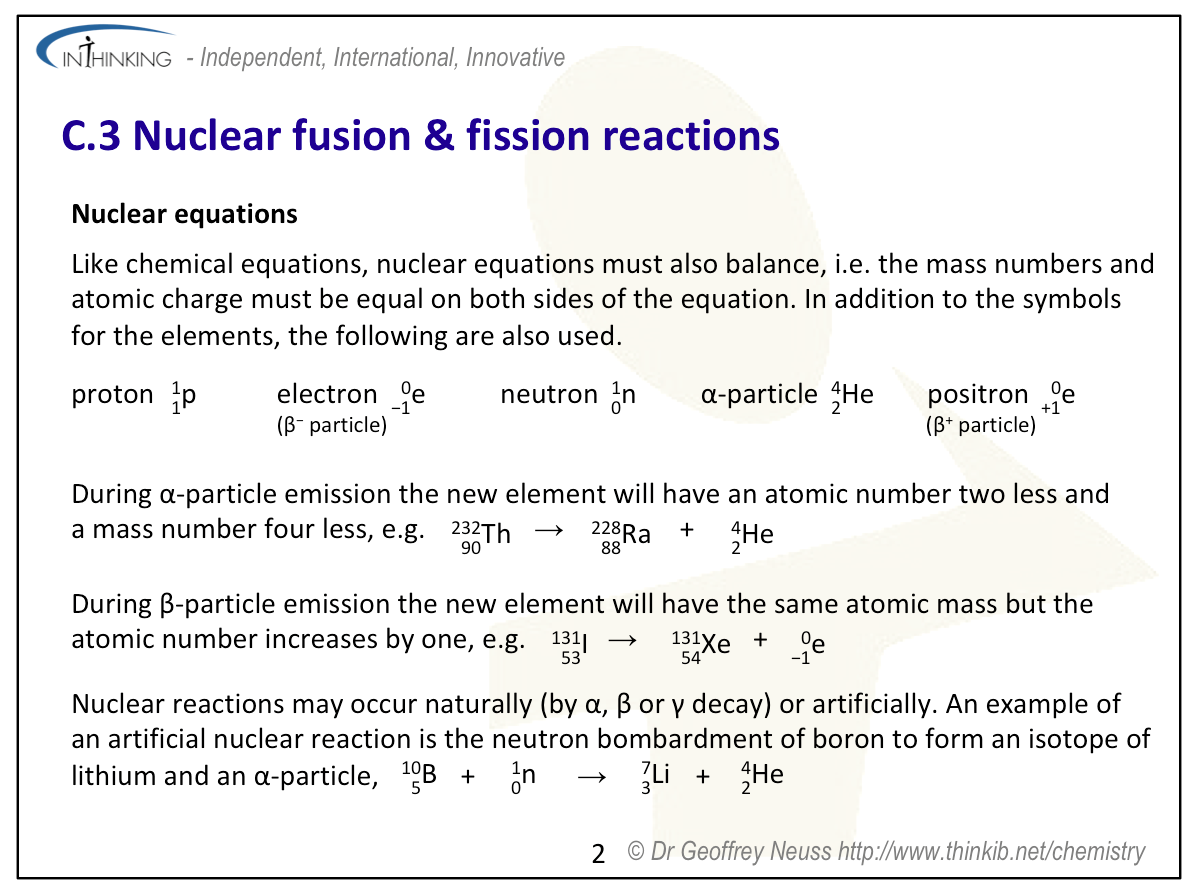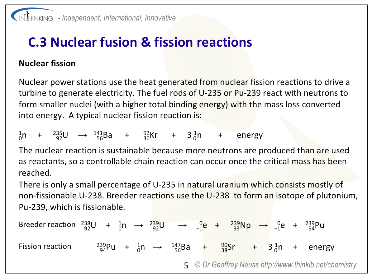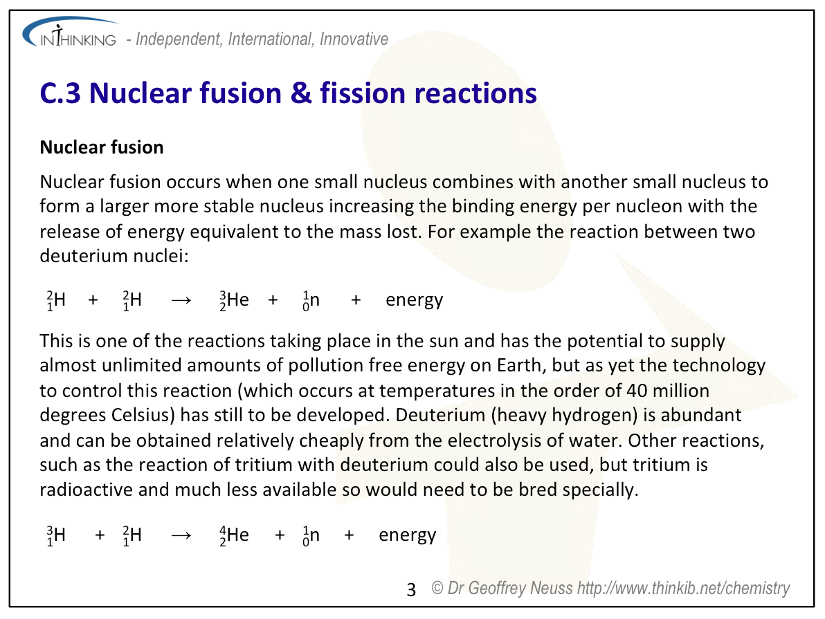 C.3 Nuclear fusion & nuclear fission reactions (4 hours)