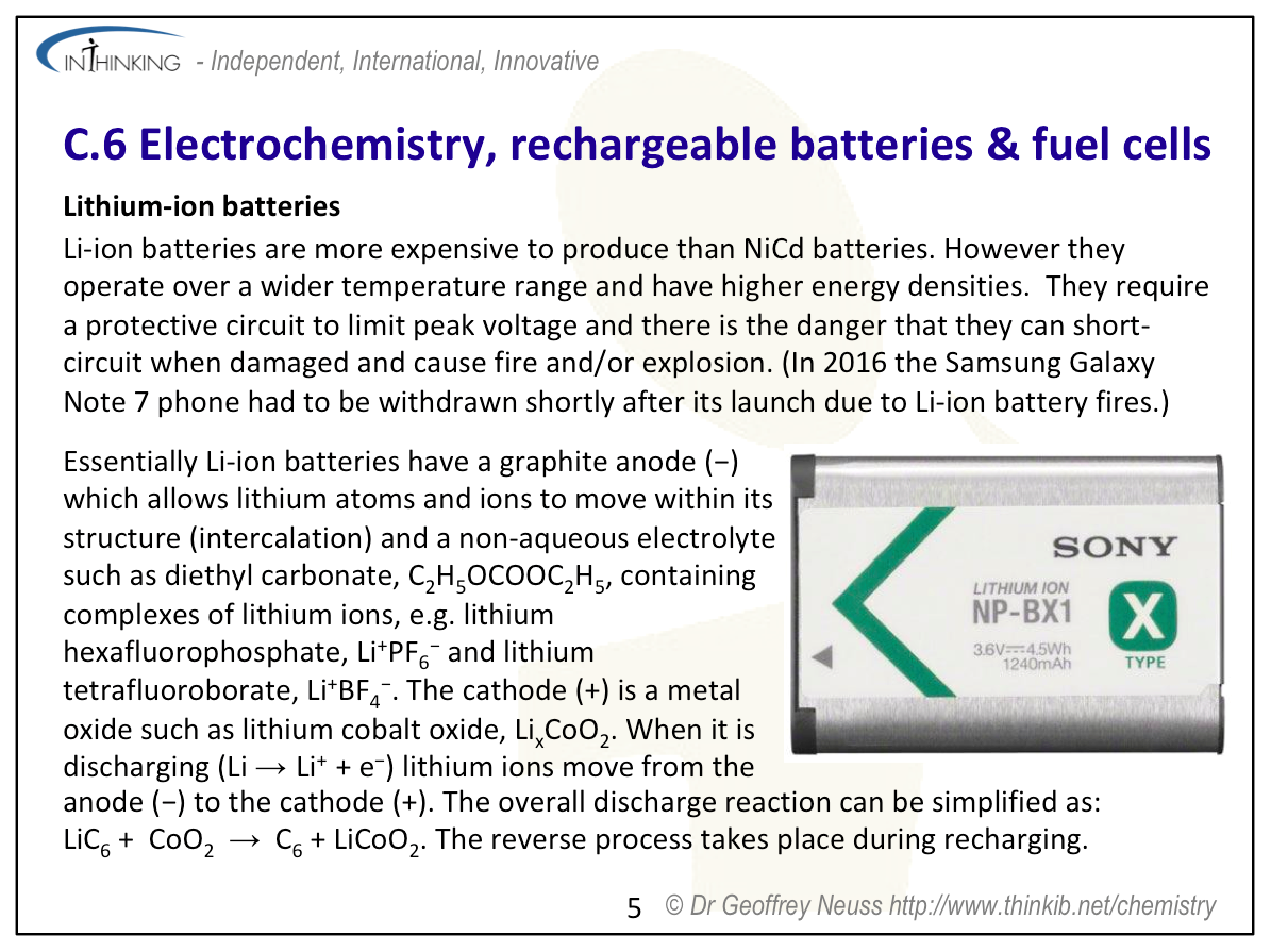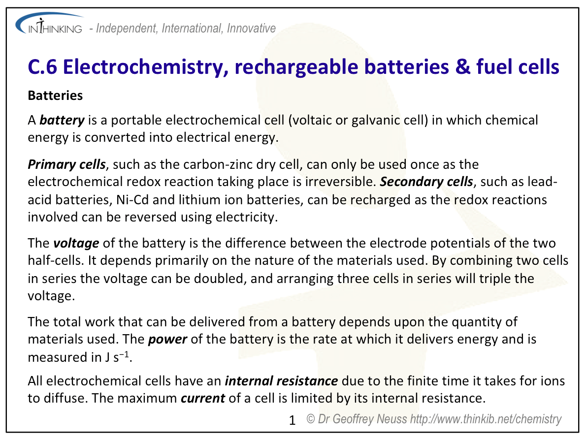 C.6 Electrochemistry, rechargeable batteries & fuel cells