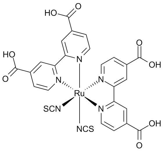 cis-bis(isothiocyanato)bis(2,2’-bipyridyl-4,4’-dicarboxylato ruthenium(II) used in DSSCs