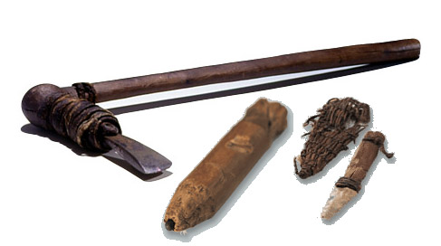 One of the great examples of the Chalcolithic Age is Özti the iceman. He lived around 3200 BC and when his remarkably preserved body was discovered in the Alps in 1991 it was found that he had with him a knife with a flint (stone) head and an axe made out of yew with a copper head.