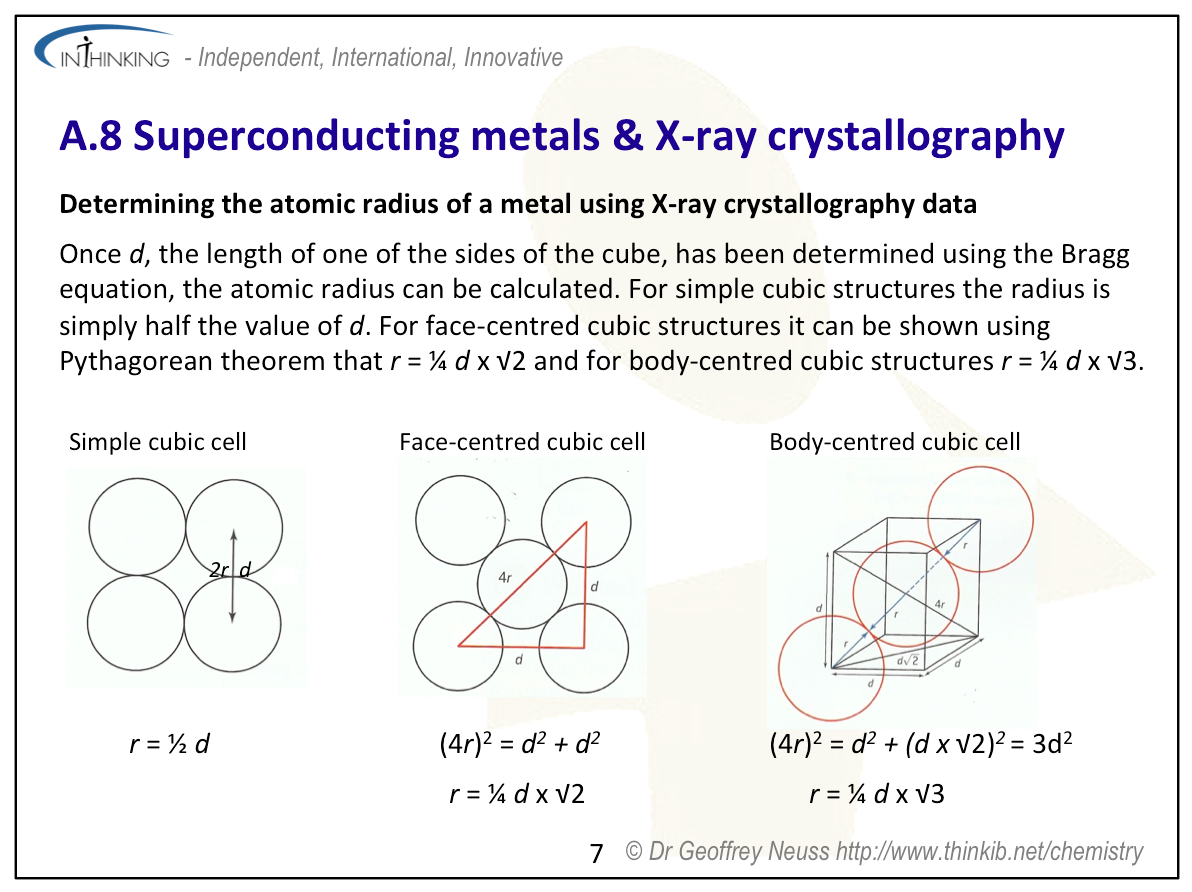 3. Richard Thornley applies the Bragg equation. However remember that although the theory is fine the radii used from the data booklet are the covalent radii not the metallic radii so some of values are not correct (see 'Pause for thought above').