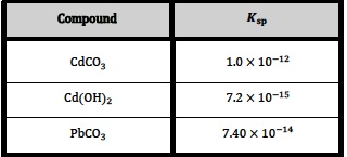 and Ksp = [Cd2+(aq)] x [ CO32−(aq)]