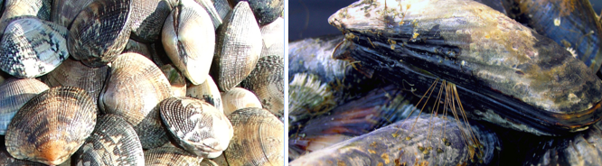 Manila clams and mussels (the shells from the two bivalves were used in the study)