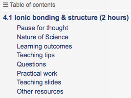 Each sub-topic (there are 53 of them in the core/AHL) has a table of contents at the top and consists of essentially six main sub-headings.