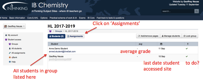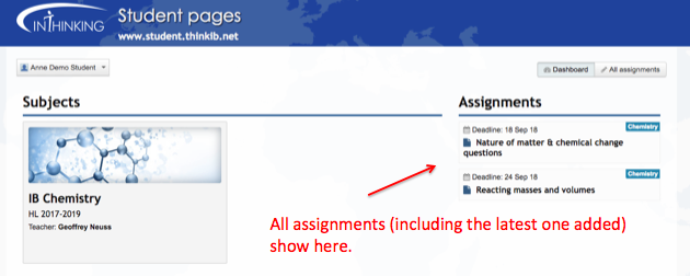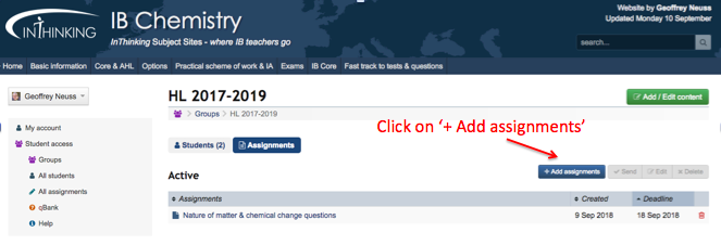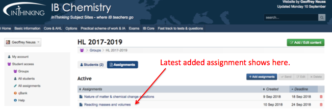 This page shows you how to set up different types of assignment within the student access of the InThinking Chemistry website.