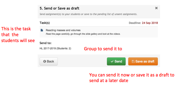 *Note that 'Send' means send to their individual InThinking student web page - it does not mean send to their e-mail address.