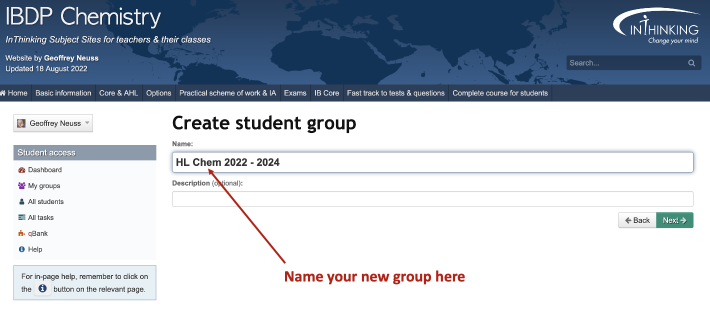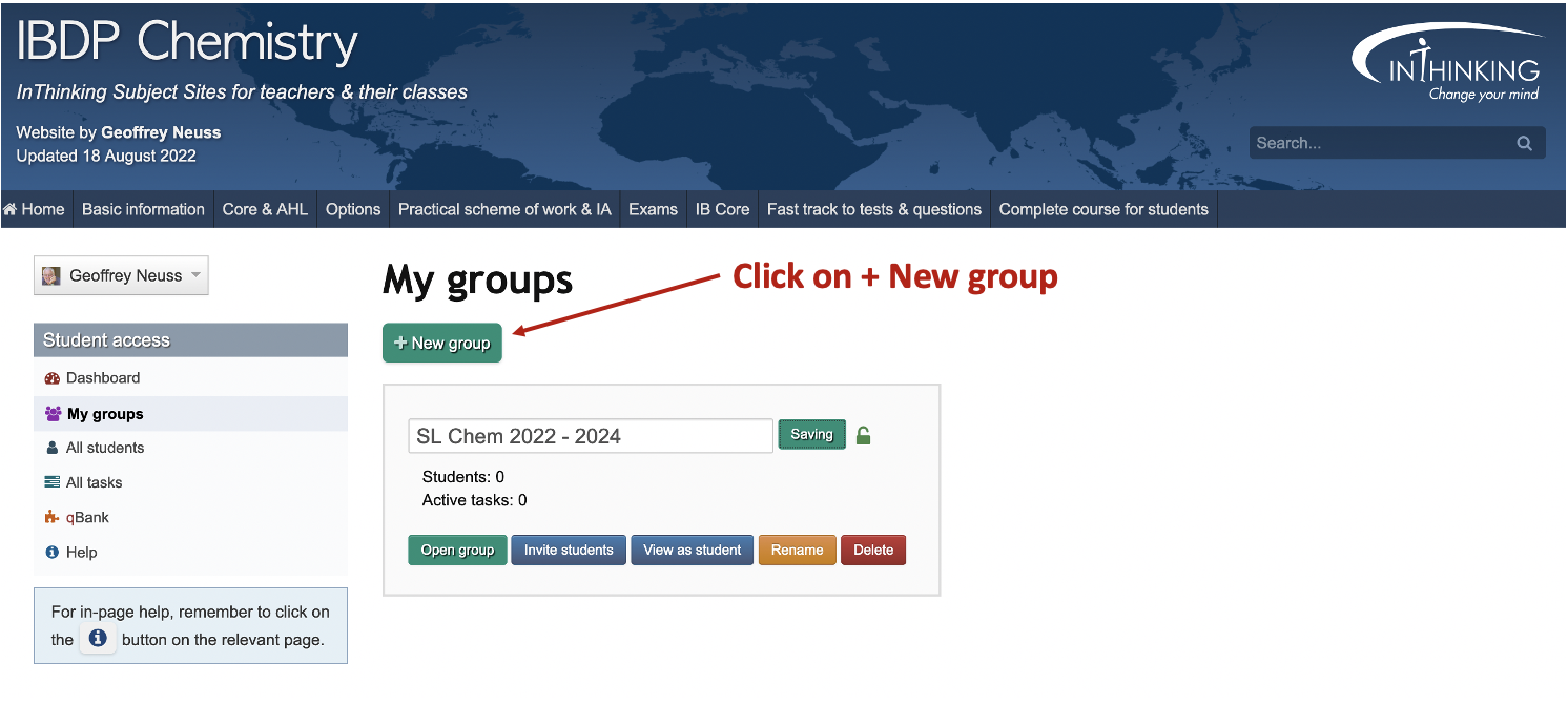Set up a new group by clicking on '+ New group'. (In the image the group "SL Chem 2022-2024 already exists.)