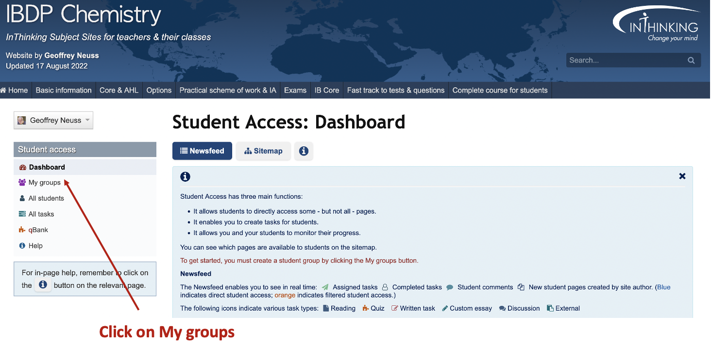 Once you click on 'Student access' it will open up to give you six choices: 'Dashboard', 'My groups', 'All students', 'All assignments', 'qBank' and 'Help'. (If you get stuck at any time the 'Help' button will hopefully rescue you.)