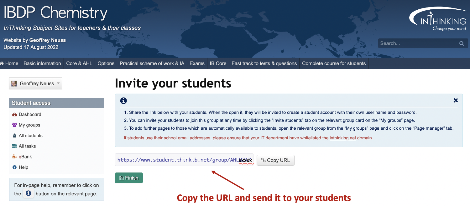 Give this URL to your students. Once they open the page on their laptop, phone or tablet etc. they will need to follow simple instructions, by creating a password etc., to be able to join the group.