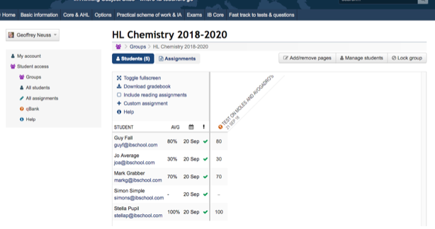You can see that you can now build up your online mark book to cover the whole of the two year course. At any time you can download and print the mark book using the menu above.